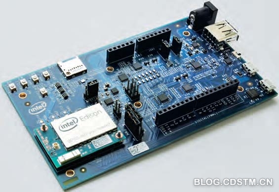 连接扩展板之前,需要先去Intel 的网站上下载两个驱动,在getstarted 的界面中提供了相应的链接,这两个驱动是Edison英特尔物联网开发人员社区提供了Edison 开发板的技术文档、开发指南及项目案例等在线资源供大家参考螺母安装在扩展板上对应的螺柱上。