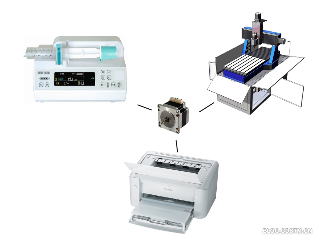 从以上的过程描述我们可以看出,步进电机的每一步都会精确地走一个步距角,而不需要额外的反馈系统,也就是使用开环系统就能实现精确的定位,而普通直流电机不加反馈系统的情况下是不可能实现的。使用步进电机可以在廉价的基础上得到理想的精度,这也是图5中那些精密设备要使用步进电机的原因之一。