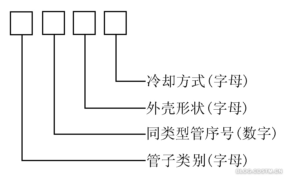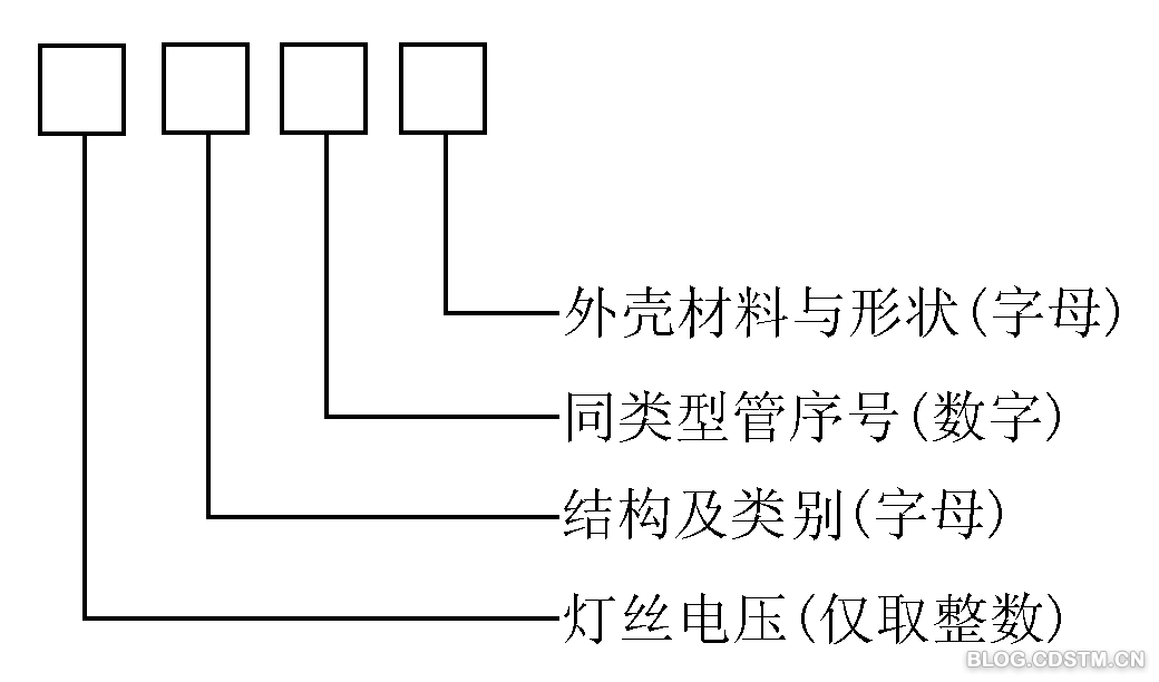 国产电子管型号命名分数字开头和字母开头两大类型,各类型一般均包括四个部分,其格式和含义如图3所示。