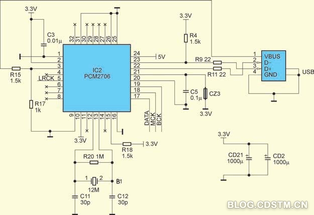 2013-11-01 10:04:45USB声卡通过USB接口对电脑播放的音频信号进行提取,并通过DAC芯片输出高质量的音频信号,以此达到显著提升音质的目的。市场上的成品声卡价格不一、种类繁多,但对于爱好者来说自己DIY也是个不错的选择。参考成品声卡、对比技术指标,笔者决定制作一款以PCM2706与PCM1793为框架的USB声卡。这两个芯片的搭配有不少的案例,同时都具有很好的稳定性。