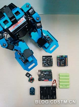 首先整理一下我们都需要什么器材,我用到的器材见表1(参见图2)。因为之前已经制作过一个臂带式体感交互控制器,里面的很多内容都是可以借鉴的,比如无线模块就不需要再进行配置了。而且这次使用的器材都是可以直接插接的模块,所以制作起来相当简单。
