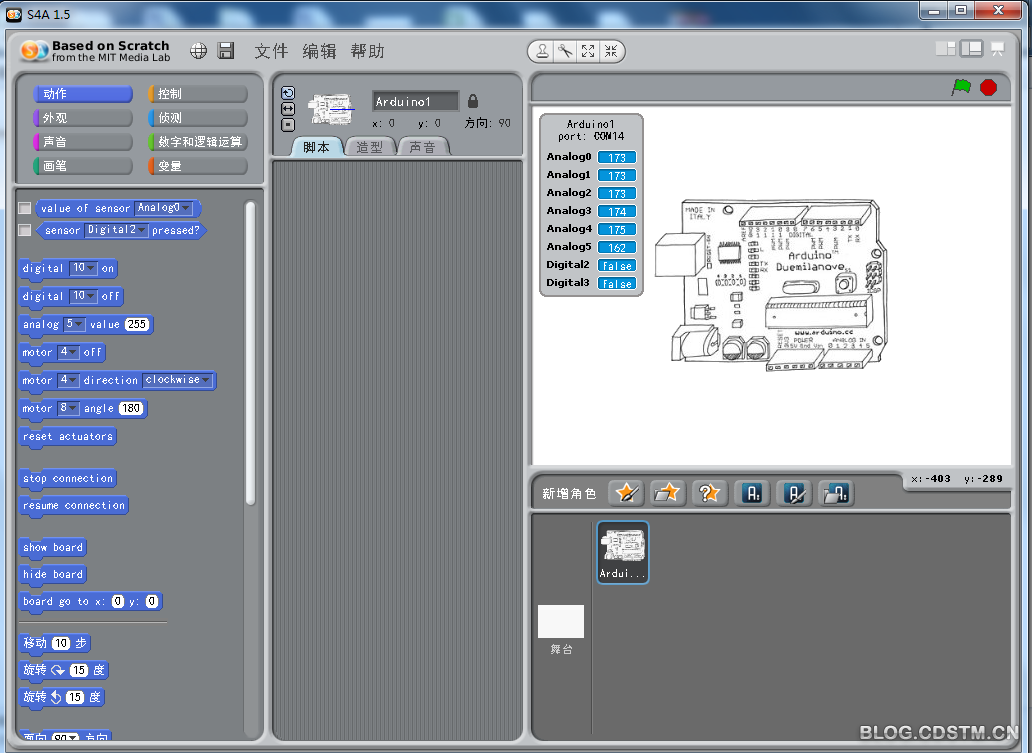 S4A是一款基于Scratch软件的改进版本,支持在连接电脑串口通信的状态下,实现对Arduino各个端口的控制。在使用S4A之前需要有如下3个步骤的准备