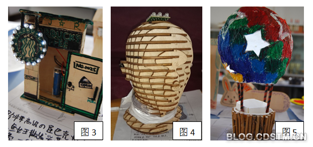 上面展示出的形态各异的作品是我校高一学生在通用技术课上的完成的部分作品。这组作品是以LED为光源的应用电子技术进行的夜灯外观设计。LED是一种新型光源,它具有高效、安全、环保、耐用的优点,我们常常看到的LED屏幕、LED作为光源的手电、汽车大灯、手机背光灯等。作为通用技术课,我们要积极向学生传播先进技术、先进理念。我校高一通用技术课在学习控制这部分的内容时,引入了LED,通过实验:点亮一只LED,让学生了解LED的特性,分析它相对其他光源的优势,设计电路模拟手机背光灯。在期末会考的综合设计阶段,要求学生完成作品。学生以电子技术为基础,应用LED为光源,通过设计电路,来完成一个台灯的外观作品。学生们充分发挥想象力,运用上课学到的电子知识,应用了光控、声控、数码控制,图3、图8为光控,开门灯亮,关门灯灭。图6、图7为声控,通过发出声音控制灯的开关。图4采用数码编程控制电路,外观使用了软件进行设计,利用激光切割机制作模型,然后进行拼装。图9使用3D软件进行外观设计,利用3D打印机打印豌豆射手。其他图为手动控制。