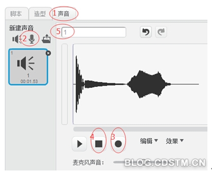首先,准备我们需要的音频(数字1~10和引导语)。Scratch支持语音录制功能,那我们自己录制就好啦。