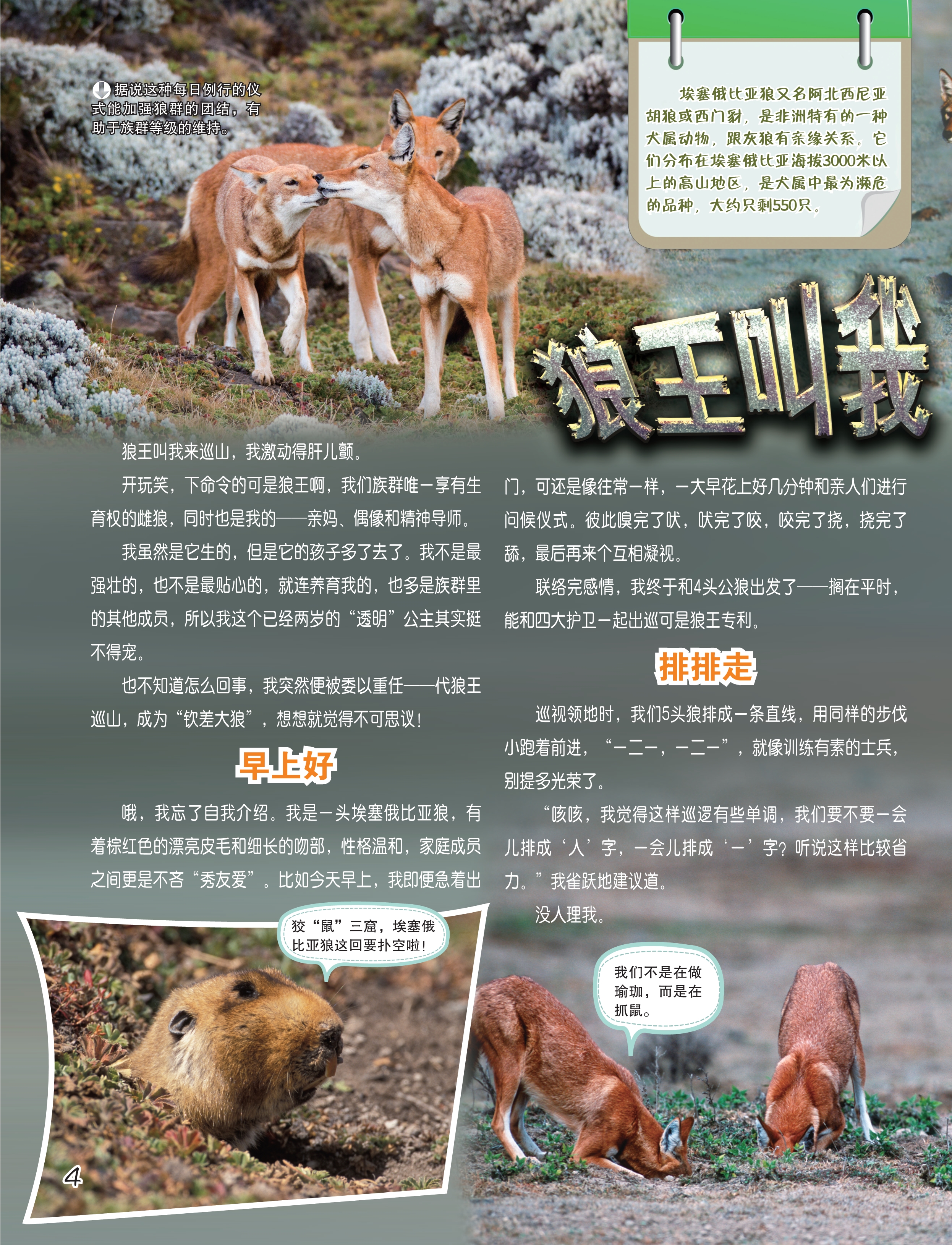 是小哥白尼杂志社旗下,针对7-15岁热爱自然,喜欢动物的少年儿童创办的全彩画刊,向读者提供丰富详尽的动物知识,神秘古怪的雨林奇遇,魔幻悬疑的森林故事,绿色清香的花草世界,有趣好玩的思维狂飚……