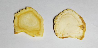 做成中药饮片的话,分软、硬质子,其轮廓有棱角,且硬度比西洋参略软。园参个子一般没有软质子(品相太难看)。