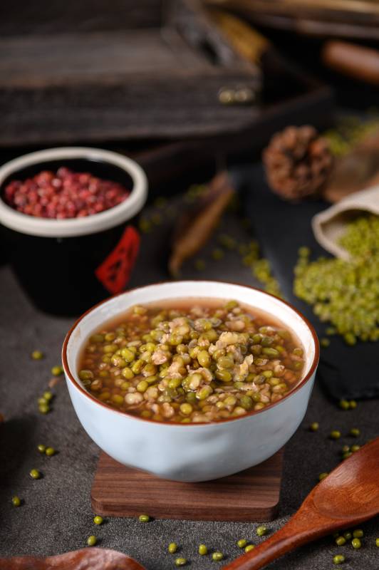 做法:将食材洗净,先将绿豆与大枣同煮,用武火煮沸后改用文火继续炖煮,待绿豆煮至酥烂后加入粳米,加入白糖调匀,晾凉后即可食用。可每天食用1次。