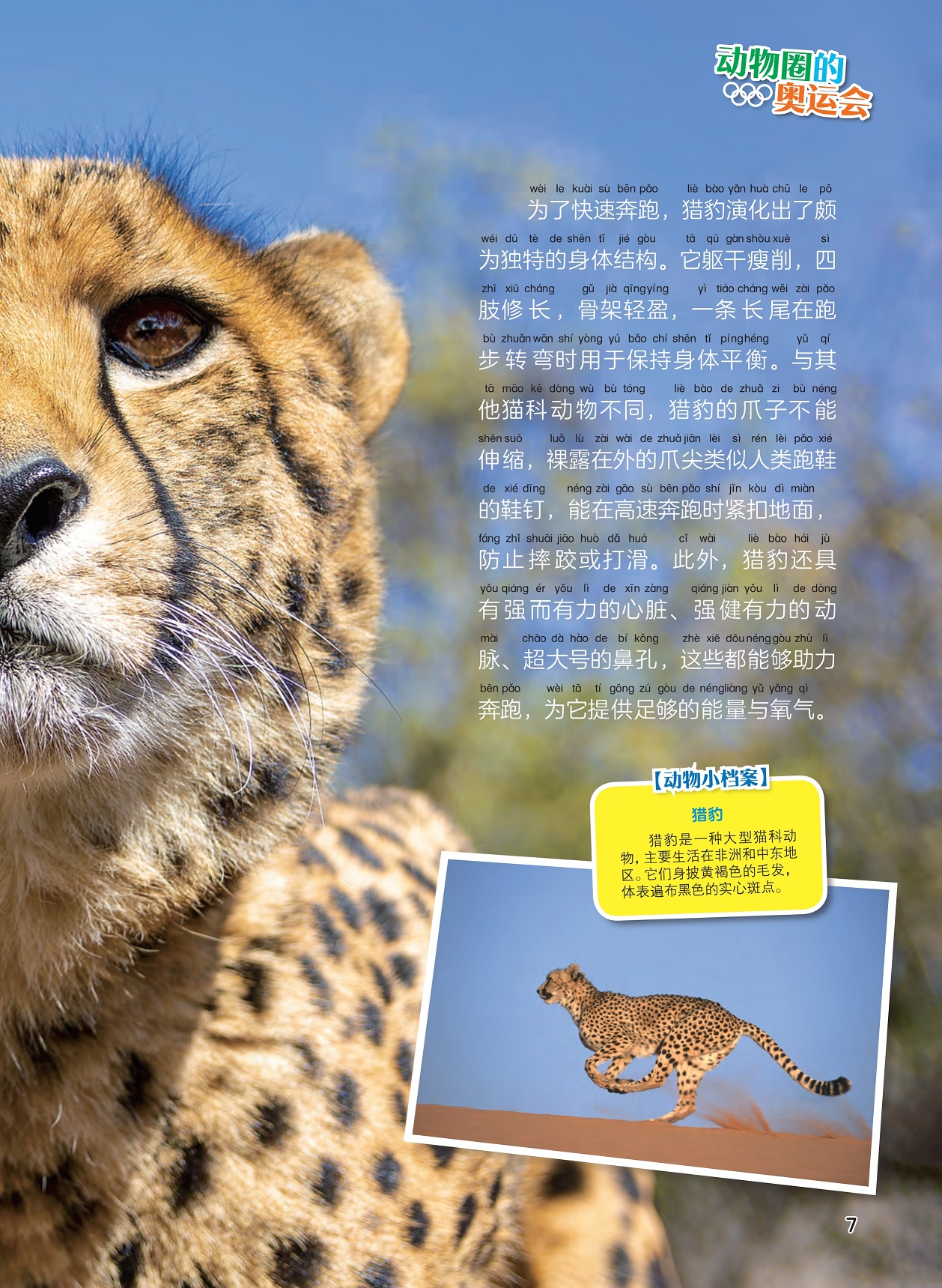 猎豹演化出独特的身体结构,猎豹是大型猫科动物