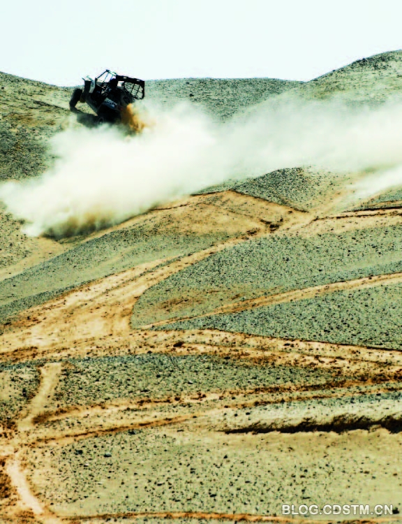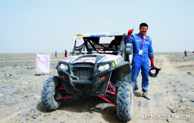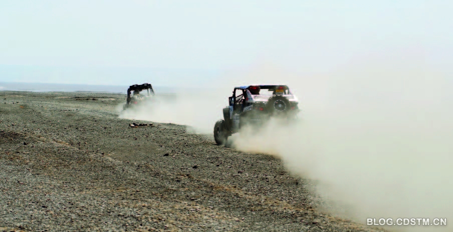 很齐全,即使发生碰撞等情况,也能保证在5小时内得到解决。”作为一位老环塔,高铭举深知环塔的意义就在于享受这种艰苦的挑战人体力和心理极限的过程,在别人眼中他们或许是“没事找罪受”,但即使辛苦,比赛结束后,他们还是会期待来年再战!当然,北极星参加环塔,也不是完美无缺,比如为了降低车身重量,无法对车身进行封闭,导致赛手每隔2 0分钟鼻子就会被飞沙堵塞,还有在硬戈壁上的提速稍显缓慢等等,这些是北极星在今后参赛时应着力改进的方面。