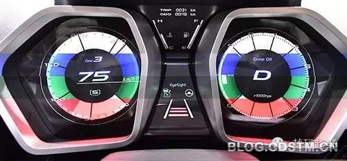 整个内饰图忽略了仪表盘,同样是全部模拟显示,还可以调整不同的背光颜色,这让我想起了杀马特少年五颜六色的头发。