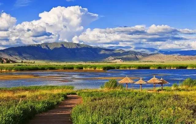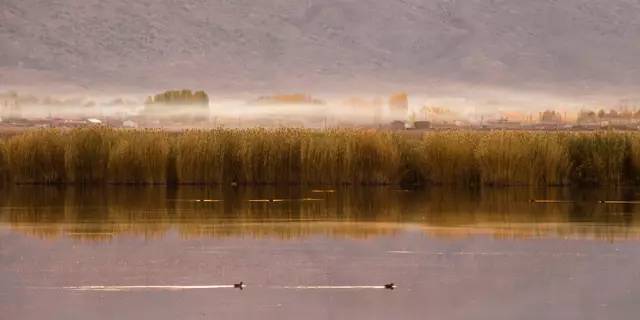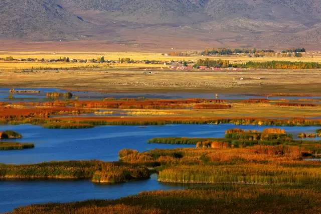 可可苏里湖由周边高山积雪融水汇集而成,是一处天然形成的沼泽湿地,湖水碧蓝澄清,水生动植物丰富,又称野鸭湖。