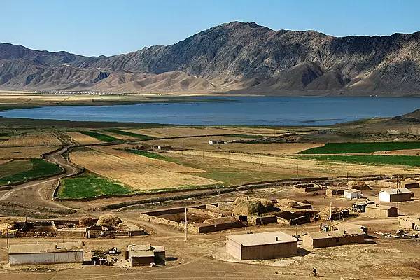 伊雷木湖,东西两侧雄峰屹立,南北两侧,绿树环绕,良田万顷,村舍镶嵌,奇妙的倒影于水中,形成两幅重叠相连的画面。