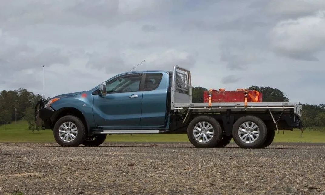 再来看看现在,一门心思发展创驰蓝天的马自达完全放弃了硬派市场,甚至还有很多转子粉期待下一款转子发动机的面世。承载能力和拖曳能力不足的四驱BT-50来对于澳洲人民说,显然还有很多可以提升的空间,于是有澳洲改装商将其改成了更显硬派的6X6车型。