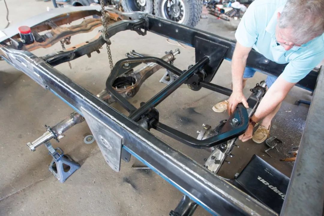 4X4改装6X6最难的应该是传统和悬挂系统了,与前两天票圈很火的的那台采用电机驱动后桥BJ80 6X6不同,这台BT-50 6X6采用的依然是传统的驱动方式。