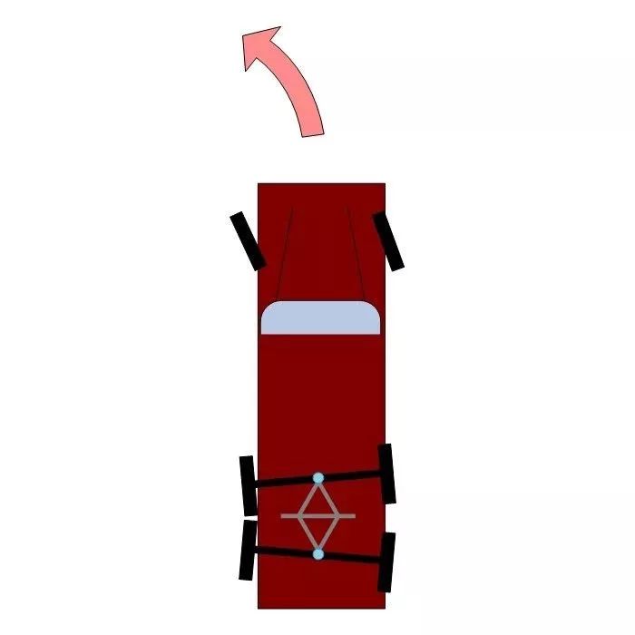 当车辆向左转弯时,后悬架的几何形状就如上图所示