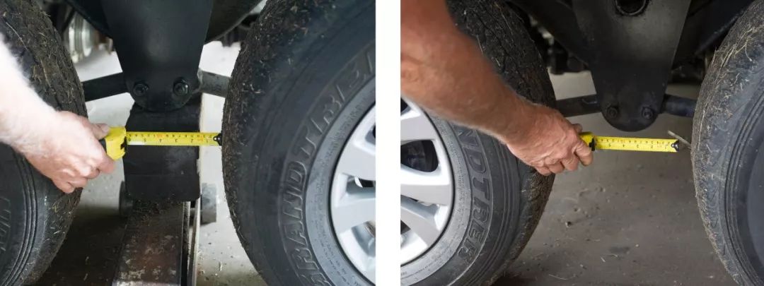 第二根和第三根轴右侧车轮之间的距离会增加,而左侧两个车轮之间的距离会减小。