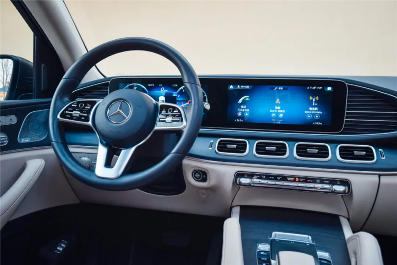 豪华、科技、质感、机械,是进入车内带给人的第一印象,和外观设计一样,整体散发着扑面而来的强大气场。平直的双12.3英寸高清显示屏,清晰直观的各项功能,强烈吸引着目光的焦点。而整齐的出风口排列和立体按键,在明晃晃的镀铬包裹下,塑造出强烈的机械感,多功能方向盘的滚轮控制和触控按钮,将传统机械控制和当下流行的触控体验完美融合。面积更大的抬头显示系统则将挡风玻璃打造成科技感十足的数字式驾驶舱,日常行车中所有关键信息尽收眼底,尽情从容驾驶,是GLE豪华车主每时每刻的基础待遇。