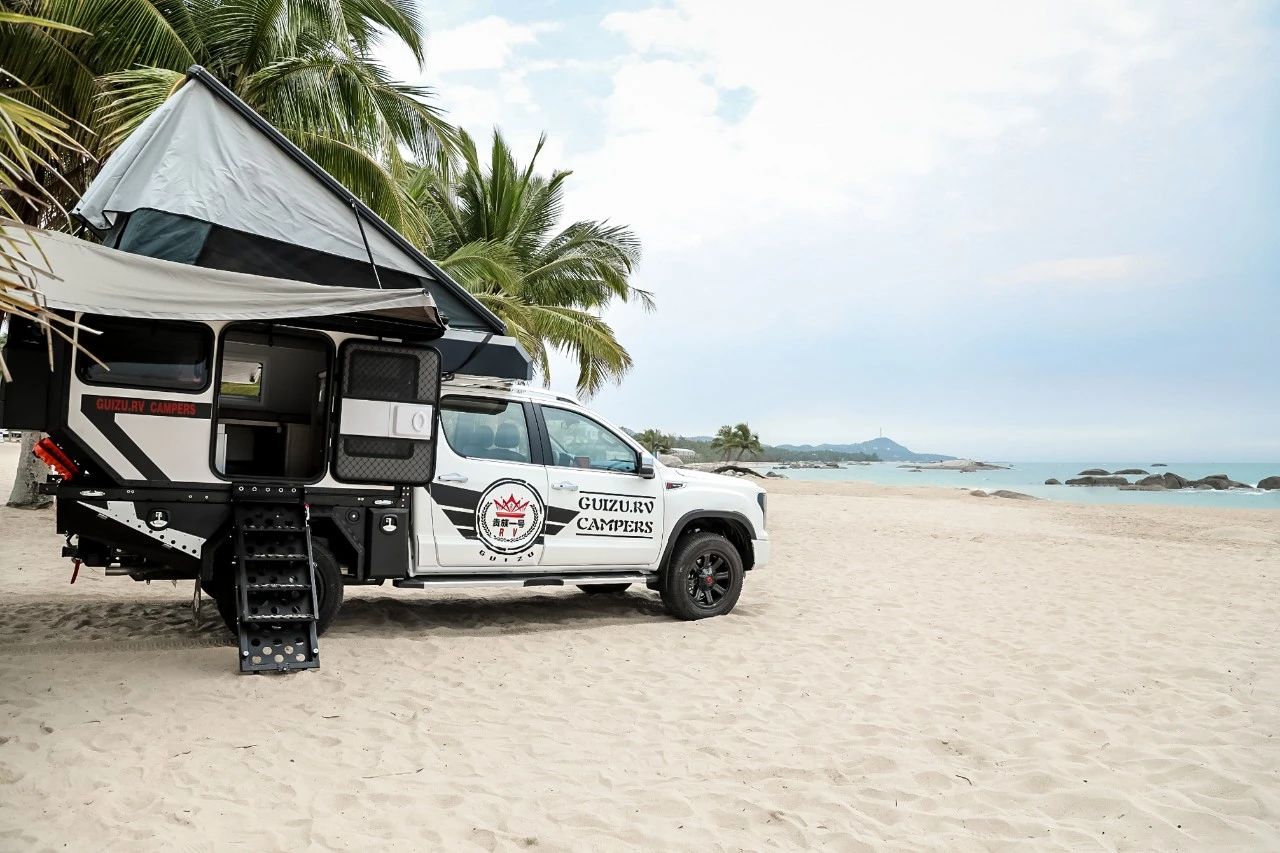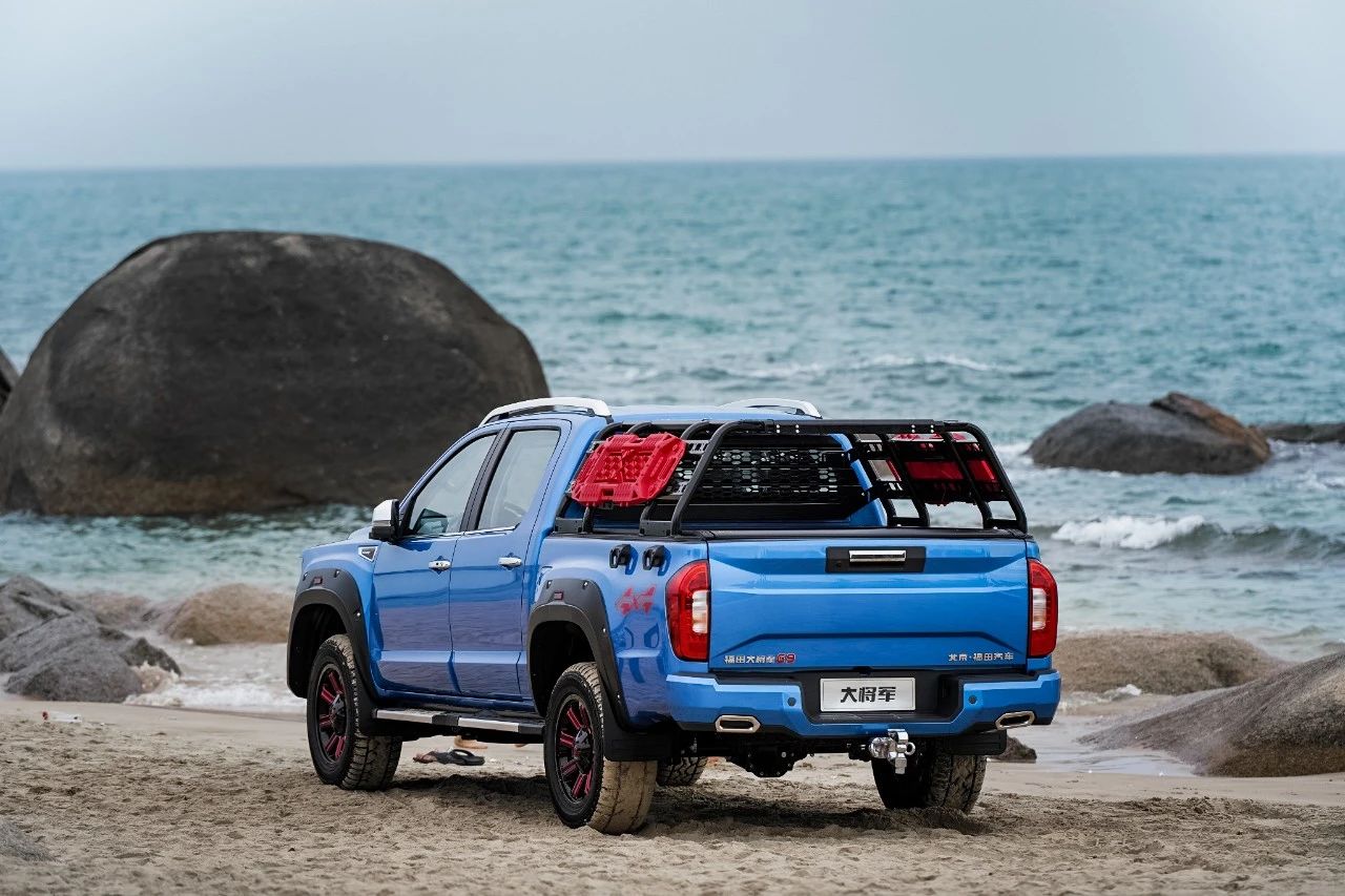 这张照片就能很明显地看到车厢外侧的固定挂钩还有尾部的拖车杠,还有原装车顶行李架。做商用车尤其是轻卡大获成功的福田在造皮卡的时候很显然把功能性也看得很重要。不管是乘用型还是商用型,皮卡总归是货车属性,而对于货车的经验,福田具有其他所有自主品牌都不具有的优势。