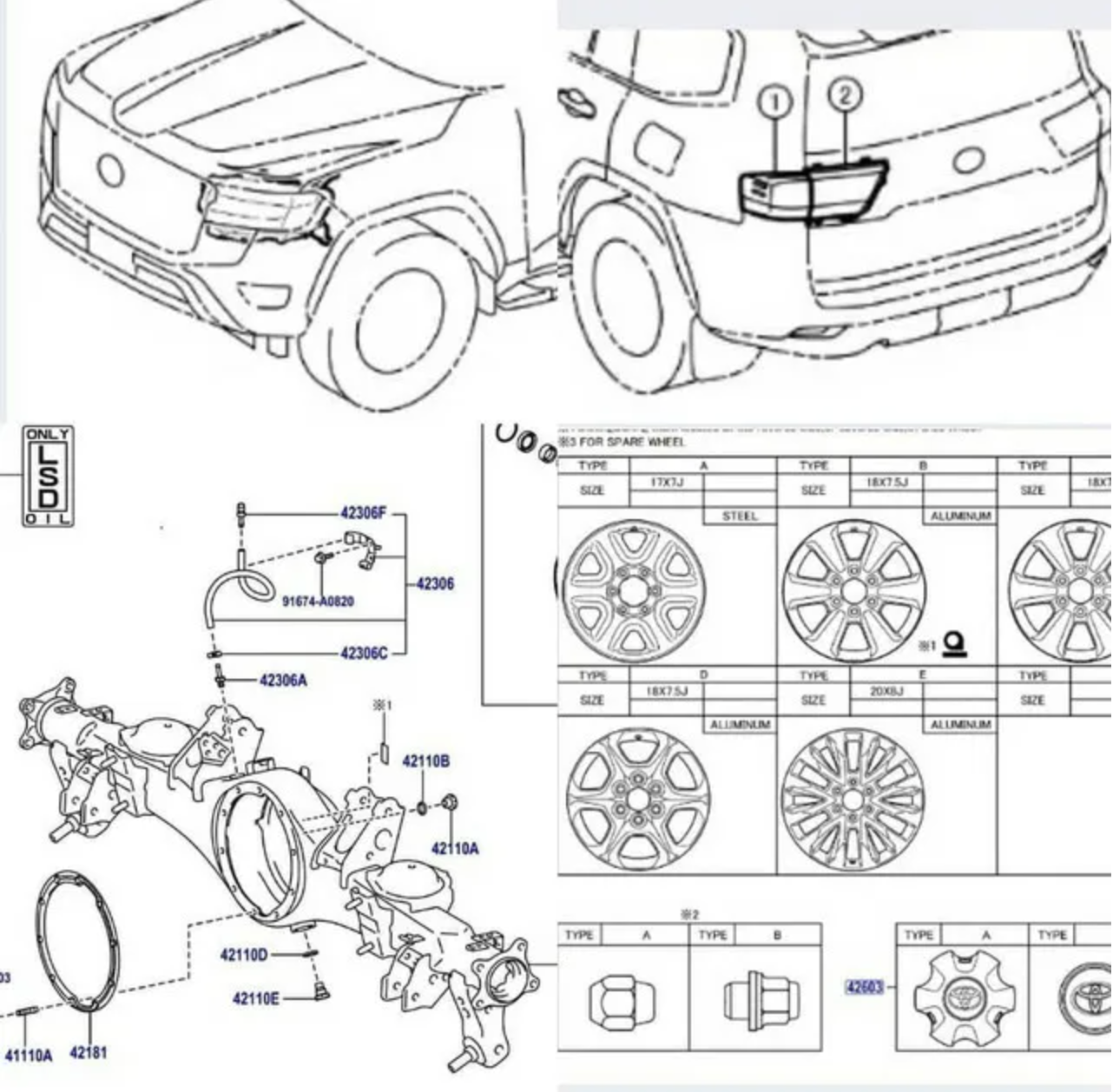 看完实车图,再看看专利图。从网络上流传的图片来看,新款陆巡除了左舵之外,还有适合日本、澳大利亚等市场的右舵车型;新车将有ZX、AX、VX、GXR、VXR五种配置和一款GR SPORT特别版。入门车型可能使用18英寸铝合金轮辋,更高级的车型则使用20英寸铝合金轮辋。