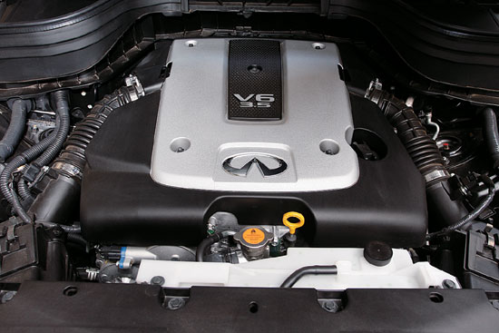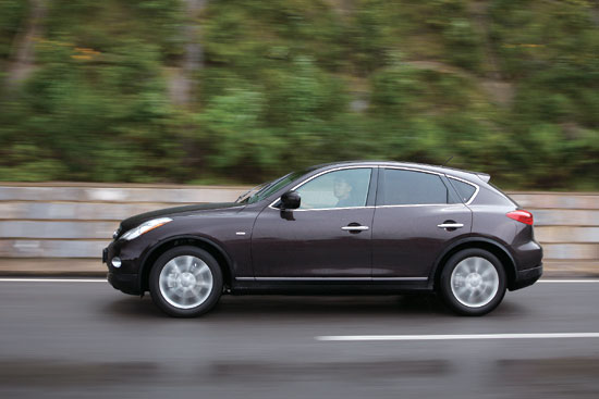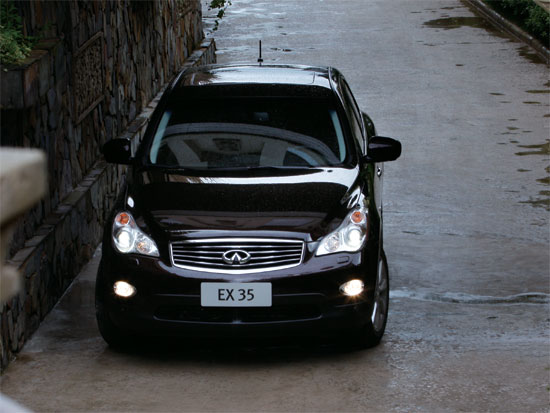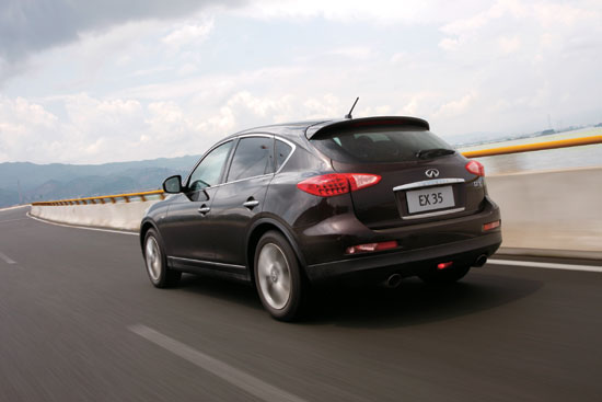 与英菲尼迪其他车型的命名方式一样,EX35同样搭载了已经在G35上使用的那台排量为3.5L的V6发动机,并且采用了先进的四驱系统。你可以在轻点油门后感受到这台发动机所具有的澎湃动力,但这一切并不是自始至终的。对于车重超过1.8t、并且转速要求较高的车型,低速时的推背感是并不明显的。但随着车速的提升,带有纯正轿跑车血统的EX35终于释放出了自己狂野的热情,车速会在非常短的时间里飙升到高点,而且不会让人感到不安。车在高速状态下的行驶非常稳定,悬架过滤道路信息的能力非常强,即便是在高速上突然出现的路面变形,我们在飞驰而过时也不会有不舒服的感觉。5挡变速器理论上相比6挡、甚至是7挡变速器,在换挡平顺性上必然有很多不足,但EX35上的这款5挡手自一体式变速器却表现出了超乎想象的平稳,无论是何种提速方式下的加挡,它都能表现得从容不迫。