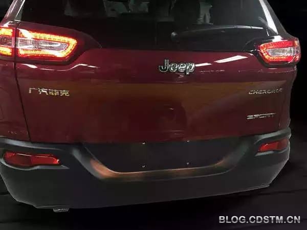 尾部的“广汽菲克”的字样表明了它的国产身份。高配车型的前后保险杠还增加了镀铬装饰,排气布局也改为了双边共双出的设计。