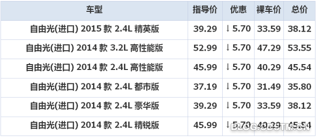 国产自由光将于10月30日上市 进口自由光优惠达5.7万元