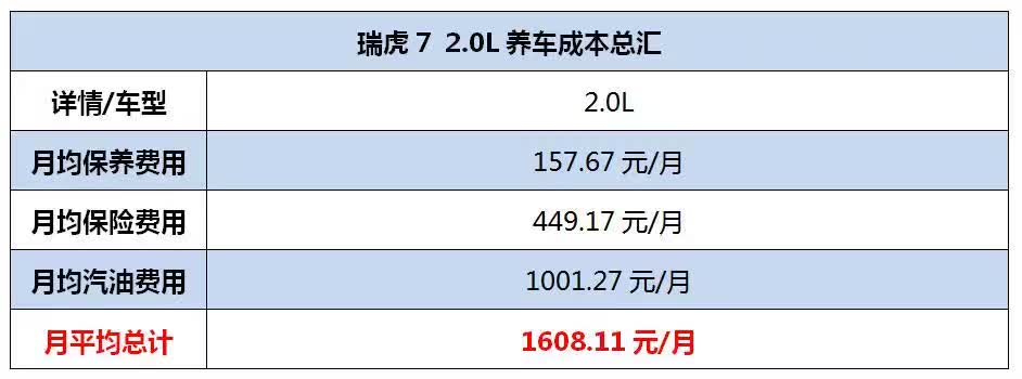 【养车】同级优势不明显,瑞虎7养车成本调查