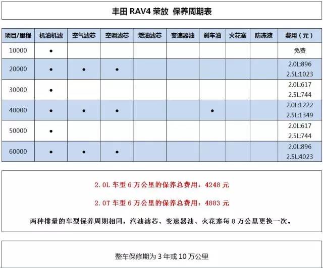 【养车成本】6万公里以内保养便宜,RAV4荣放养车成本