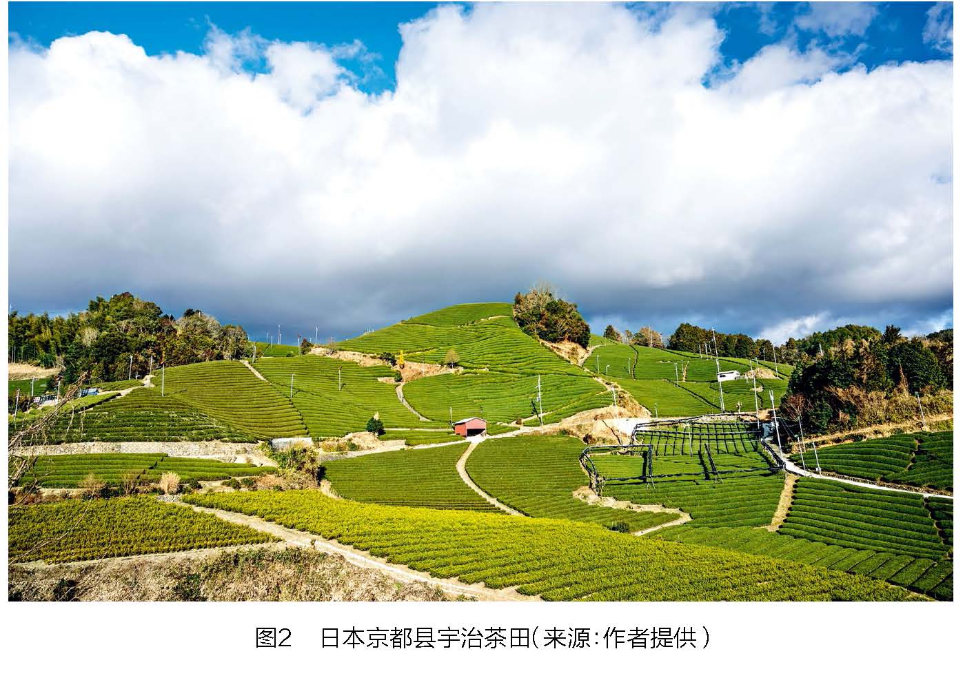 此类著名的产茶区包括宇治、川根③和狭山④。” (图2)“日本茶叶集中种植在水稻等作物无法生长的地区,土壤条件并不是最好的。除了宇治附近的茶园,其他种茶地通常分布在梯田和迎风的高原台地上。在宇治附近,有相当一部分低洼的土地被用来种植茶叶。”