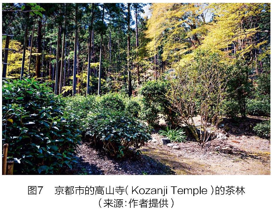 毋庸置疑,茶景观与茶的生产一样古老。日本是世界上产茶历史第二古老的国家,仅次于中国,可 追溯到9世纪。茶最初由佛教徒引入日本,供医药或宗教使用。在中国学习佛教的僧侣,如Saicho(最澄,公元766或767— 822年)和Kukai(空海,公元 744— 835年)从中国唐朝带回茶种,种植于大津、滋贺县和奈良县(这3个行政区县建于9世纪初),但彼时饮茶文化和茶叶生产并没能生根落地。直到宋朝时期,另一名高僧Yosai(荣西),也被称为Eisai(容西,公元1114— 1215年),他为日本正式引入了饮茶文化和茶叶生产。荣西也因撰写日本有关茶的经典著作而闻名于世,即公元1211年出版的《吃茶养生记》(Kissa Yojo Ki)(图6),他将部分茶种给了另一名日本佛教徒明惠(公元1173— 1232年),明惠和尚将它们种植在京都市中心以北山区的高山寺(Kozanji Temple)中(图7)。据说,明惠和尚曾在京都市中心以南的宇治(Uji)等地传授过种茶技艺。在此之后,日本的茶景观开始在佛教寺庙以外的地区传播开来。