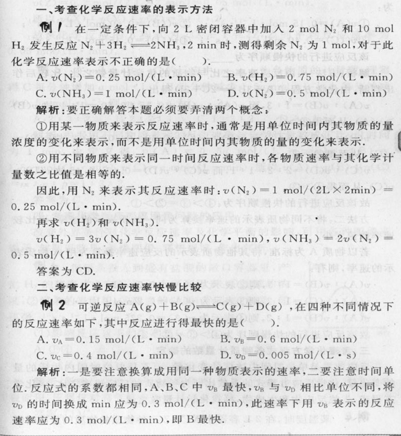 化学反应速率考点例析