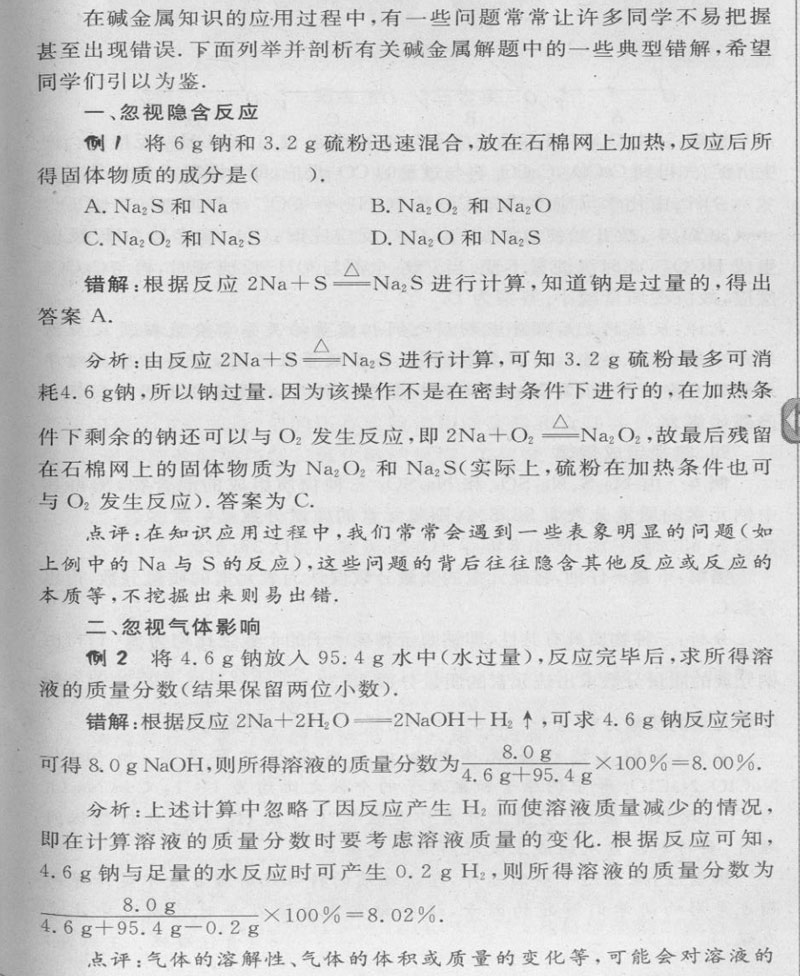 剖析碱金属解题中的易错点