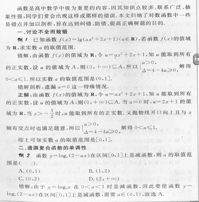 例析对数函数中的几例错解