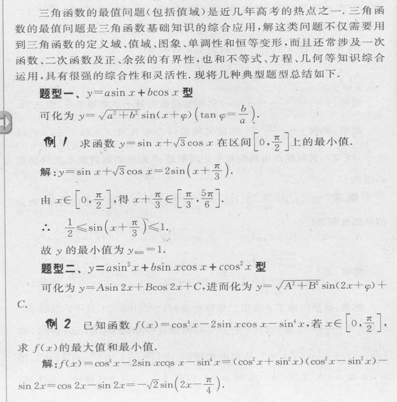 三角函数的最值问题分类解析
