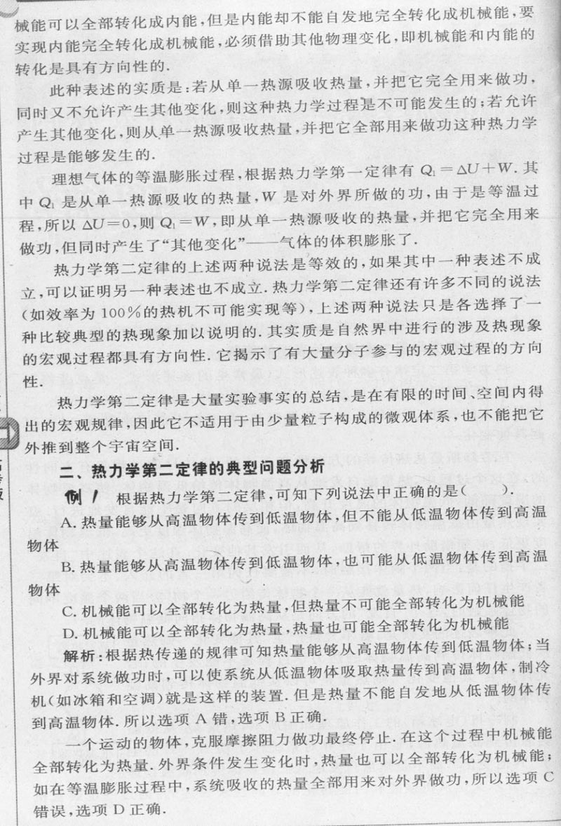 对热力学第二定律两种表述的理解