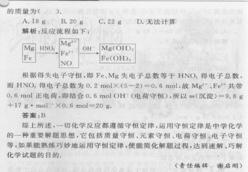 巧用守恒速解有关镁、铝、铁知识的计算题