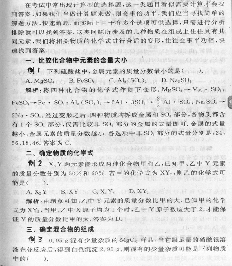巧妙变换化学式 快速解答选择题