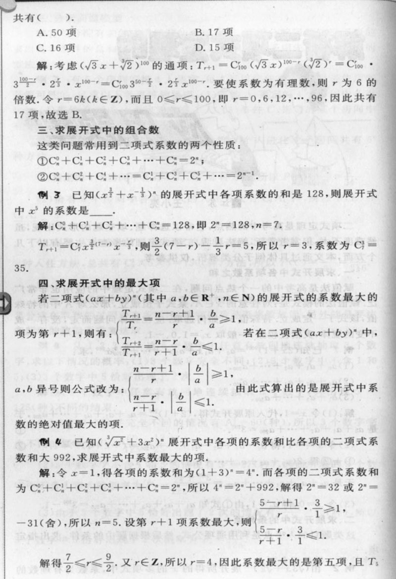 解析二项式定理的应用题型