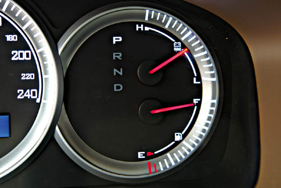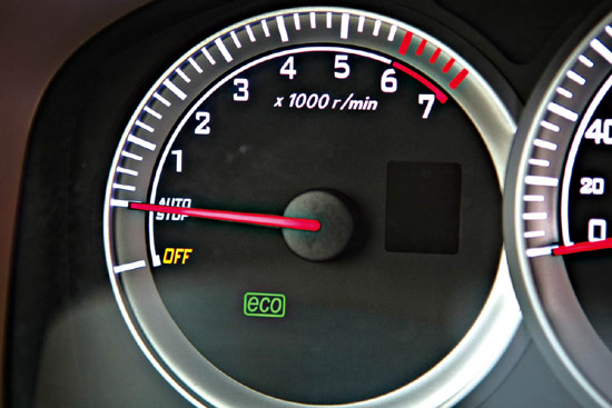 实际驾驶中,我们还是明显感觉到了车辆在静止起动时所带来的异乎寻常的动力输出,虽然表现有些突然,但是电动机的适时介入使得加速感大大增强,因此中低速度下的君越后备动力会更加充足,静止加速和中途超车比起普通版车型更加游刃有余。当遇到堵车或者红灯需要临时停车时,只要踩住制动踏板,智能停机系统就会自动运转。此时发动机处于断油停机状态,完全通过电池来提供车内音响、空调等设备的电源,此时车内会保持停车般的宁静享受。当再次踩踏油门踏板时,发动机会迅速重新起动,驾驶者会感觉到微微的瞬时振动,由于发动机的这种自动再起动运转是由电动机通过传动带直接带动,比起动马达起动更加顺畅自然,也更节省燃油。在车辆滑行或制动时,车辆即可以自动回收制动能量来为蓄电池充电,在回收车辆动能给电池充电时,车辆处于断油状态,此时仪表盘ECO会亮起,而且每当车辆的瞬时油耗小于4L/100km时,ECO指示灯也会亮起,越频繁越长时间的亮起就证明越是处于最为省油的状态,通过观察“ECO”提示灯,还可以帮助我们养成良好的驾驶习惯。