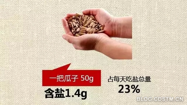 一把瓜子含盐1.4g,占每天吃盐总量23%。