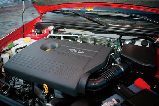 奇瑞的这款ACTECO 1.8 L发动机之前也应用于东方之子、瑞虎3等产品,因此我并不陌生,但以前更关注的是动力表现,经济性并不是留意的重点。出于成本考虑,奇瑞没有在这款发动机上采用目前流行的可变正时气门控制系统,但由于采用了“对称气道”技术及轻量化设计,这款发动机也有效地抑制了进气噪音,增加了汽油燃烧的充分度。就动力而言,即便与合资对手的新产品相比,这款发动机也不柔弱,97 kW的最大功率不但在同排量中处于一线,甚至还能超越一些2.0 L排量的对手。单从数值上看,170 N?m的最大扭矩出现时机并不早,转速要升至4 300~4 500 r/min时才会出现,但实际上,发动机在2 500 r/min时扭矩就都能达到158 N?m,而此时的输出功率也已达到了50 kW左右,因此低转速下良好的扭矩特性是这款发动机的亮点。由于多数情况下,发动机中低转速就能提供足够的动力,高转速出现的几率也就大大减少,省油的结果也因此变得合乎情理了。