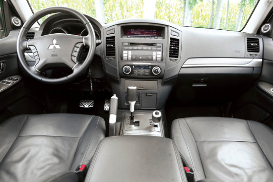 帕杰罗的5挡INVECS-II手/自动一体变速器具有学习驾驶者驾驶风格的功能,由此也能选择更贴近个人风格的换挡时机,但这项功能并没有让我们印象深刻,D挡模式下变速器还是会在2000r/min左右时悄悄升挡。手动模式下你可以让转速逼近红线,但为了保护发动机,电脑还是会对不合理的操作加以控制,所以你要想在60km/h的车速下去强降至1挡,电脑肯定不会让你胡来。