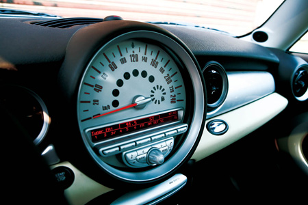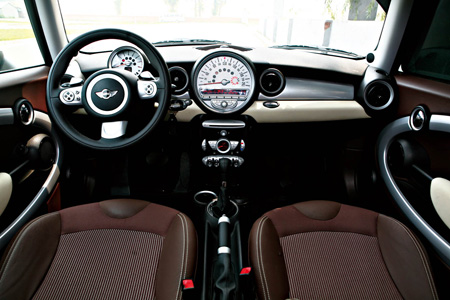 还记得MINI COOPER的车内吗?单是各种夸张可爱的设计就足以令多数时尚“美眉”痴狂,而这也是MINI不容轻易改变的经典设计之一,所以CLUBMAN车内的变化不大,我们又一次见到了了位于中央的硕大车速表和方向盘前造型浑圆的转速表。
