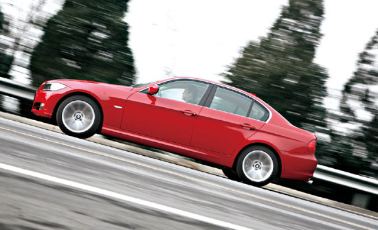 这次试驾的重点是325i。也许是为了几年后即将到来的大改款做技术储备,飞行器操纵杆似的变速器手柄此次并没有移植到3系身上,不过方向盘上的换挡拨片却是在325i豪华版这里现身了。325i的动力部分没有改变,直列6缸发动机依然保持了160kW的最大功率和250N?m的最大扭矩。动力数值虽然听上去并不算响亮,但在行驶过程中325i会让你体会到什么叫充沛,即便车速达到120km/h时再提速,加速感仍然是说有就有。与老款相比,09款325i起步时的感觉进步了许多,只要脚下油门稍给点动作,车身就会随之响应,而之前老款325i起步时就像是一只晒久了太阳的猫,总会给你呈现出一小段慵懒的瞬间。