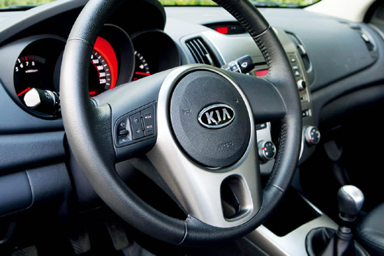 尽管福瑞迪仪表台设计得很有层次感,但与外观相比,车内的革新精神还算不上激进,实用性才是设计师的首要诉求。由于采用了对称式设计,中控台的造型并不抢眼,各项功能键也是常规布置,尽管操作起来便利高效,但形式略显老套。比较“炫目”的倒是福瑞迪的方向盘,不但三辐式被设计得极其夸张,令人过目不忘,方向盘上的音响控制键也被列为了标配。三炮筒式的仪表盘也是一处增添时尚指数的设计,尽管这在A级车中已不是新鲜事物,但在起亚车内却是第一次见到。受限于成本,韩系车在材质的选择以及工艺细节的处理上,还不足以撼动一向以高质高价著称的德系对手,但凭借起亚丰富的造车经验,福瑞迪还是轻松营造出了令人满意的细腻感。中央扶手和车门内衬板都采用了软性材料,手感不错,塑料部件的装配工艺也在向日系对手看齐,而车内随处可见的储物空间、杯架等,都让福瑞迪变得十分舒适及人性化。为了满足消费者的不同口味,福瑞迪提供了两种内饰颜色,一种是突出居家的黑米双色搭配,另一种则是强调运动的全黑内饰。