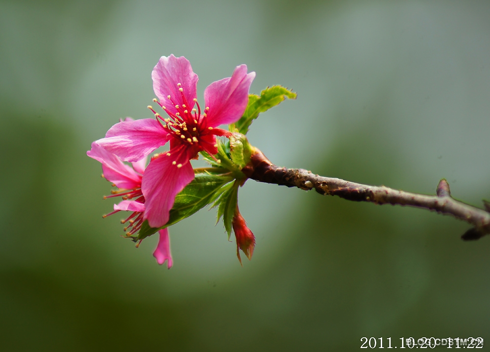 正常情况下,樱花在春节前后开放。然而在南宁石门森林公园,却出现深秋樱花开的奇事。广西大学的专家认为与气温偏高有关,我不认同这一观点。因为同在这个公园的樱花谷,别的樱花树没一株开花,只有北面路边的一株开有10余朵。同样的地理环境、同样的气候条件,只有一株开花,就难又用气温较高来解释了。希望植物学家解开其中之谜。