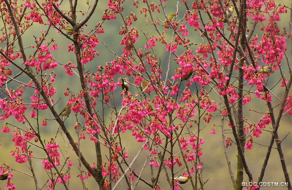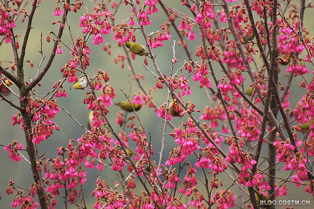 【原创】成群绣眼戏樱花