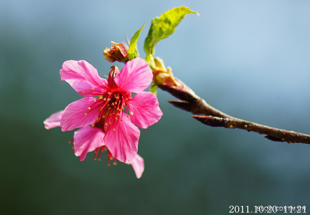 正常情况下,樱花在春节前后开放。然而在南宁石门森林公园,却出现深秋樱花开的奇事。广西大学的专家认为与气温偏高有关,我不认同这一观点。因为同在这个公园的樱花谷,别的樱花树没一株开花,只有北面路边的一株开有10余朵。同样的地理环境、同样的气候条件,只有一株开花,就难又用气温较高来解释了。希望植物学家解开其中之谜。