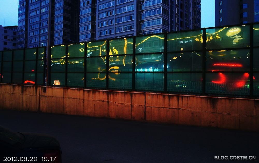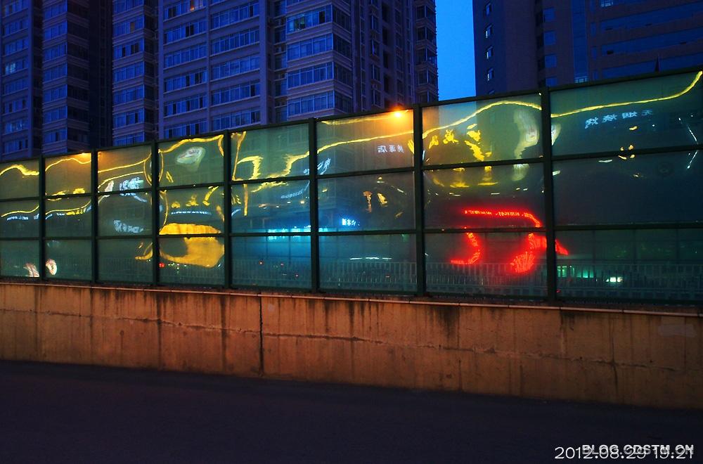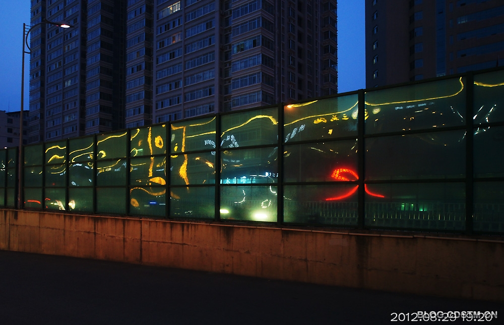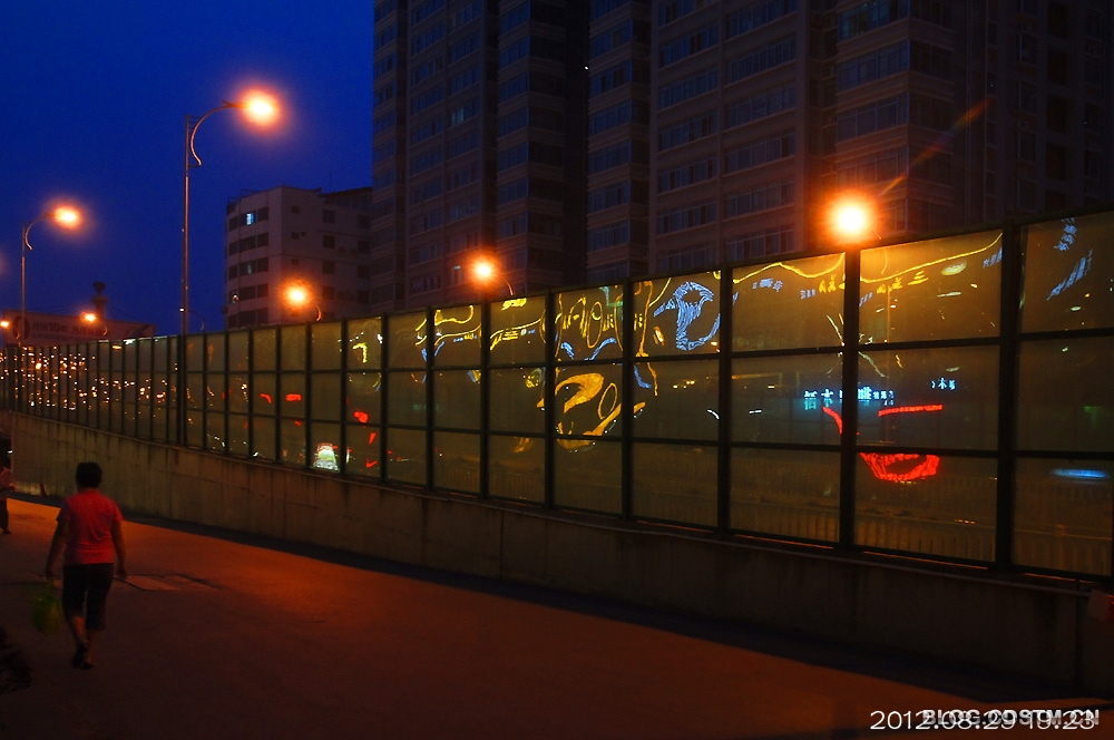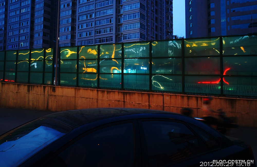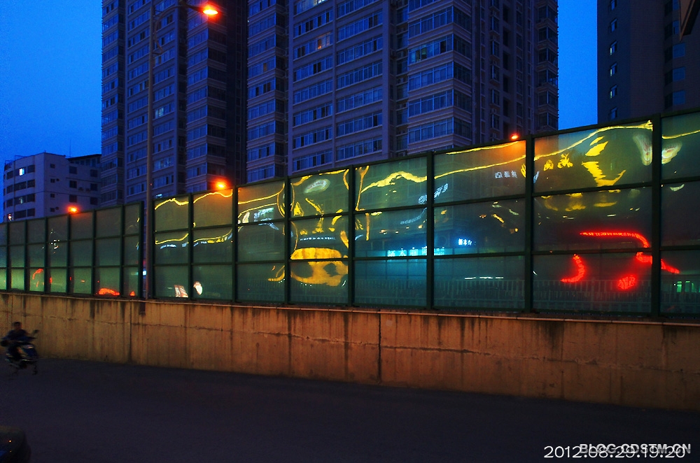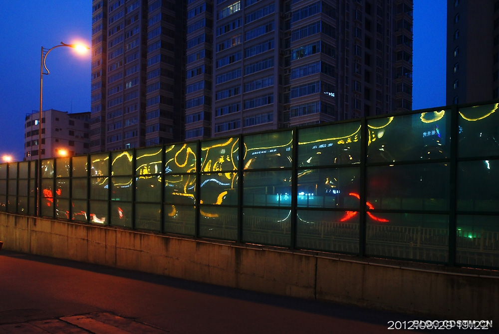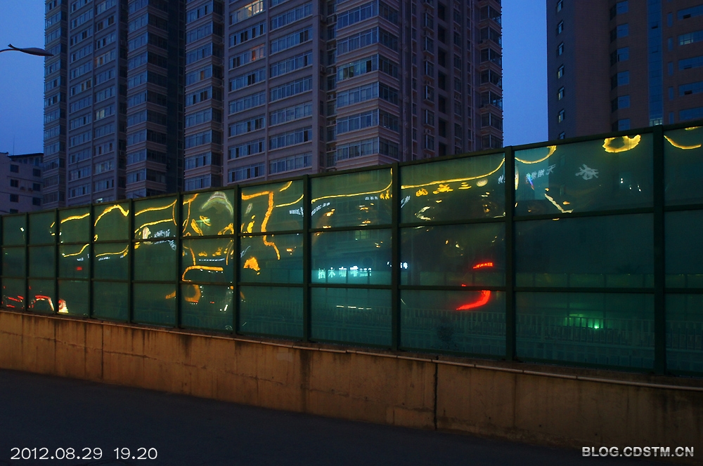 8月29日傍晚,原想到邕江边拍晚霞,谁知霾太重,没什么可拍,于是收镜回家。路经桃源大桥东时,发现玻璃围栏上出现梦幻般的灯影,构成各种各样的图案,非常奇妙。那地方人流车流频繁,不好安放脚架,便用索尼机特有的手持夜景模式拍下这组图,感光度最低3200,最高6400.但噪点并不明显。速度秒1/30,但图像不虚。