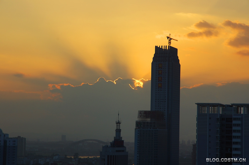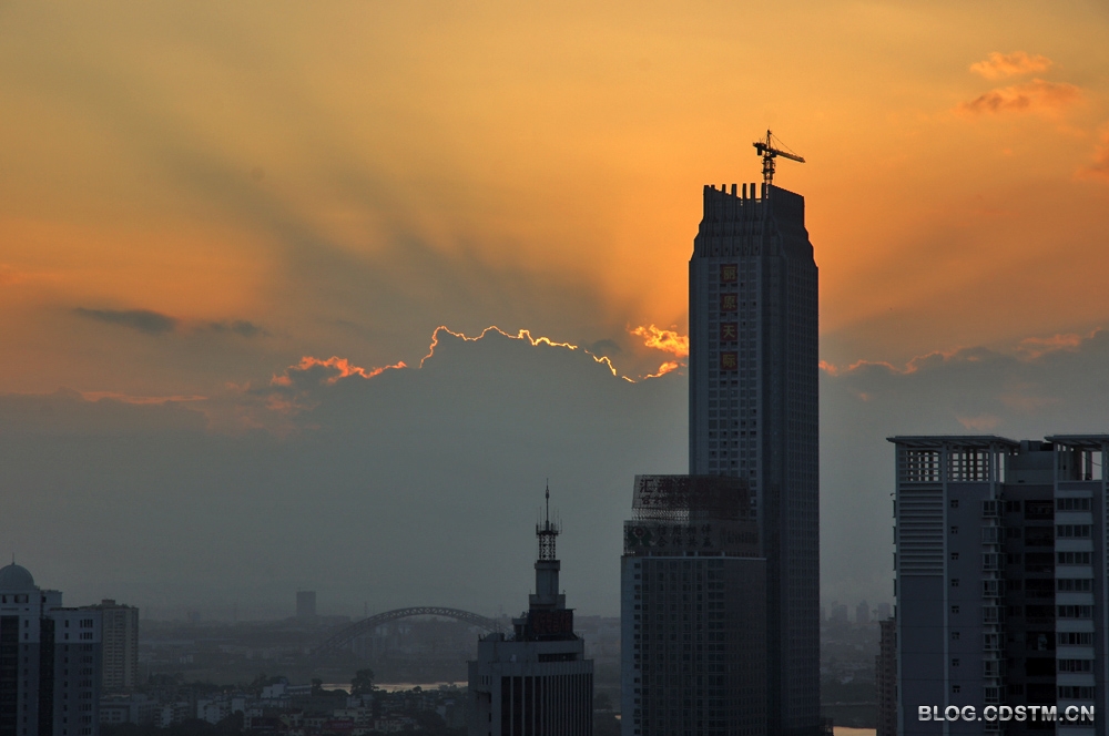 入秋后,南宁雾霾天气较多,近一周更是连续阴雨。今天下午太阳才露脸。下班后赶紧去追赶夕阳,还好,还能赶上夕阳给云钓上金 边的时刻......